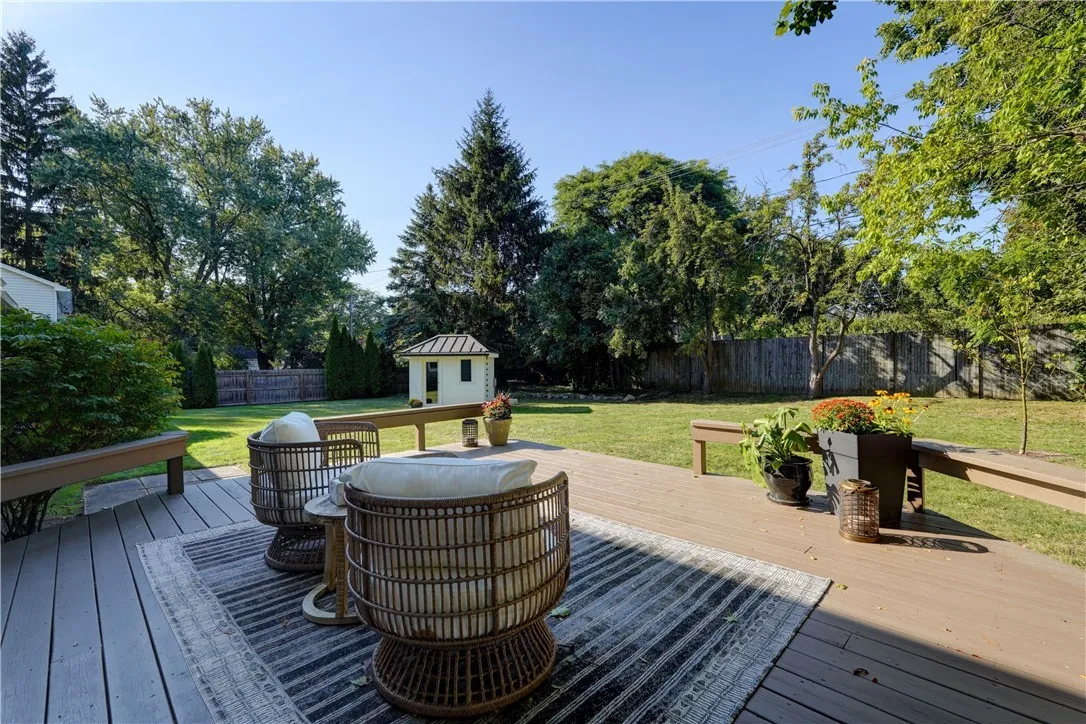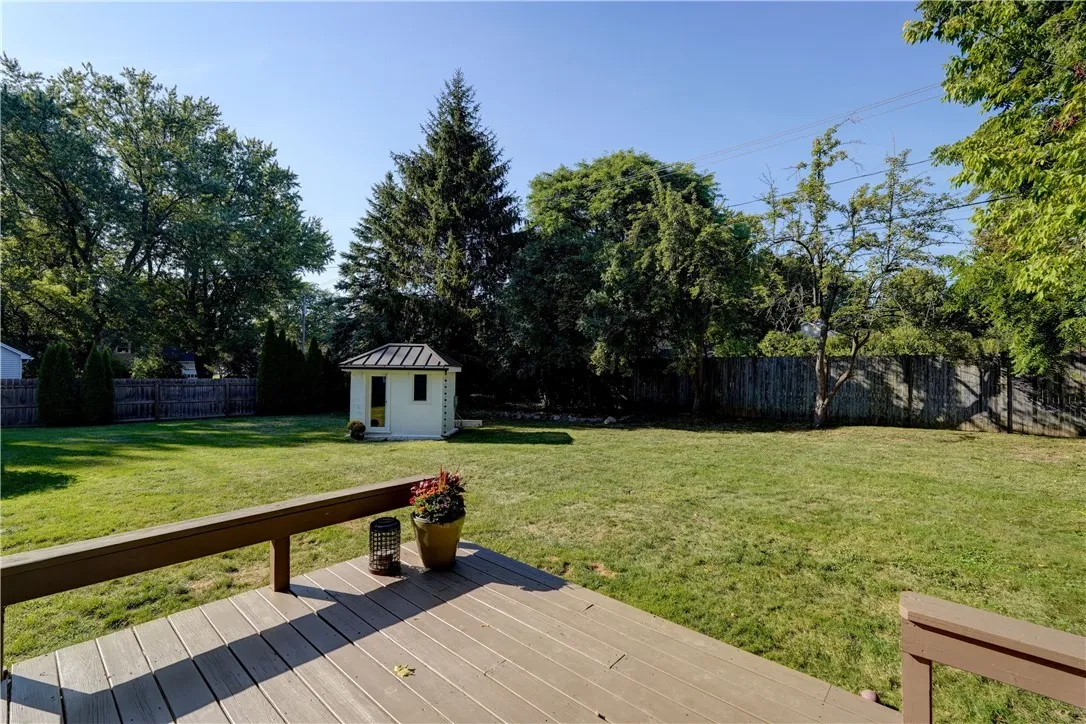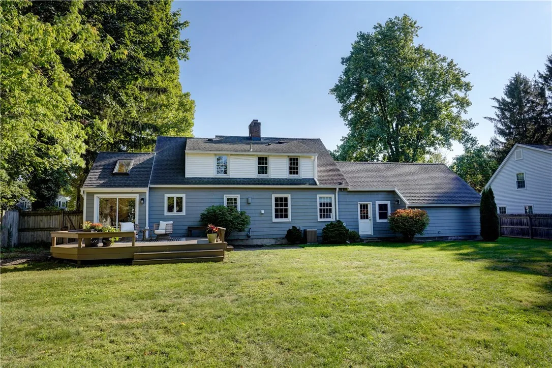 This gem is located in the heart of Penfield. Beautifully maintained, and well cared for. Home features 4-bdrm, 2 full bath, 2 car garage nestled on a spacious .36-acre lot. 1866 square feet of living space, this home offers comfort, charm, and many modern updates throughout while preserving it’s timeless character. Expansive heated breezeway perfect as a flex space or sunroom-leading into a home filled with gorgeous hardwood floors throughout. Stunning kitchen features a stylish backsplash (2023), vaulted ceilings, recessed lighting and skylights that flood the space with natural light. Relax in spacious yet cozy family room with a charming decorative fireplace & built-in shelving creating the perfect ambiance to unwind. First-floor laundry room adds convenience and functionality. Outside offers nice size deck overlooking private fenced in yard, ideal for gatherings, gardening, or simply enjoying nature. Pristine condition. True pride of Ownership.